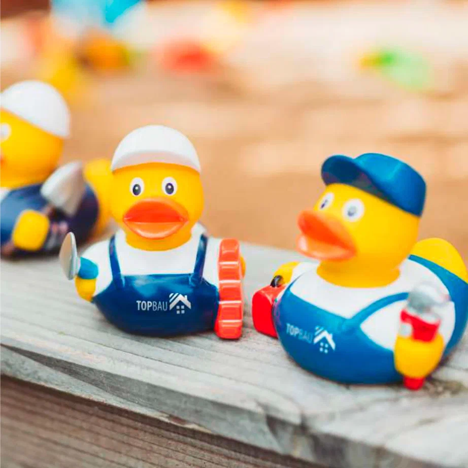 - Строительным компаниям — уточка-строитель может стать веселым талисманом на офисном столе.