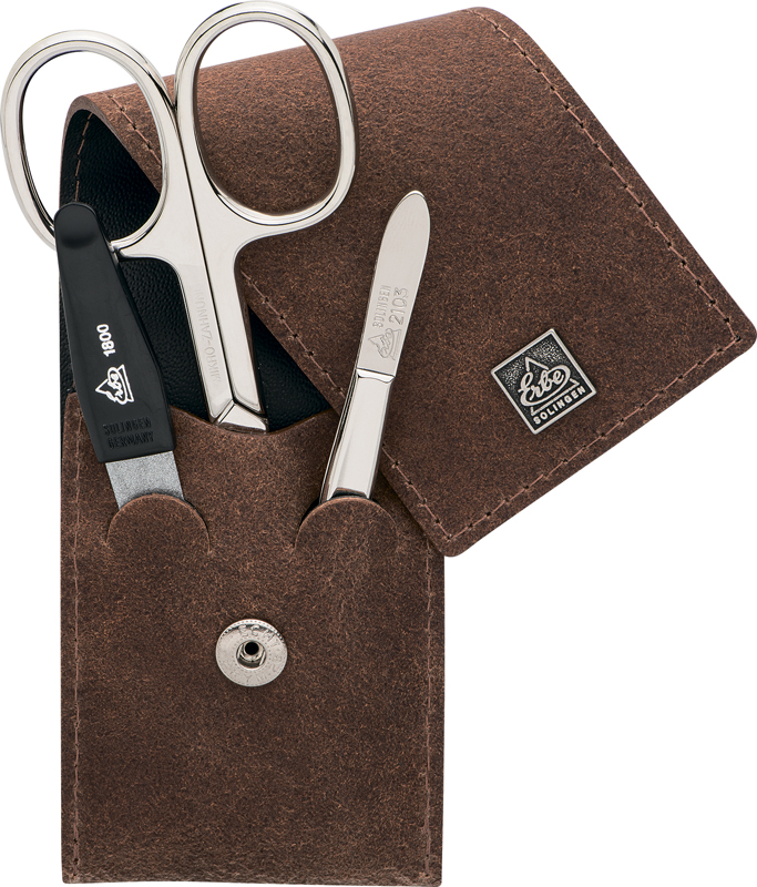 Маникюрный набор Erbe, 3пр. Футляр: натур. кожа, цвет коричневый