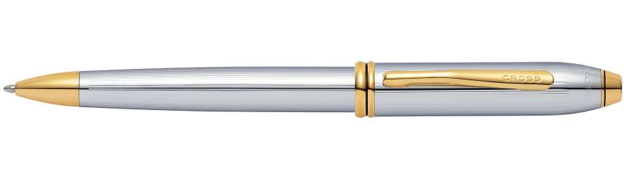 Ручка шариковая Cross Townsend. Корпус-латунь и хромовое покрытие. Отделка и детали дизайна-позолота 23К. Цвет-серебристый.
