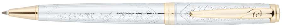 Ручка шариковая Pierre Cardin RENAISSANCE. Корпус - латунь и хром с гравировкой. Отделка и детали дизайна - сталь, позолота. Цвет - серебристый. Упаковка В.