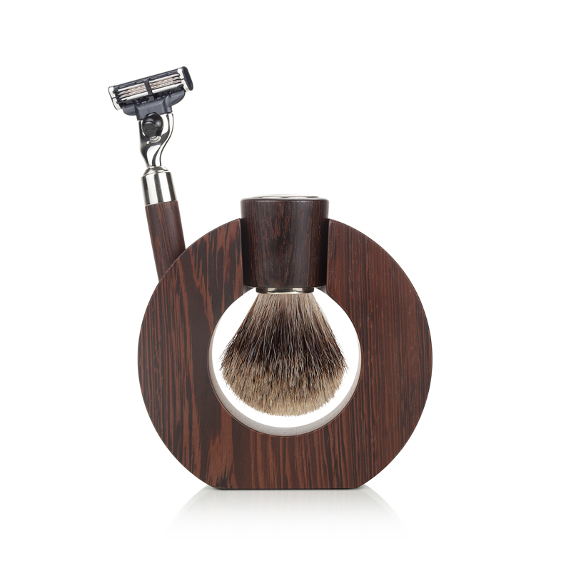 Бритвенный набор Mondial: станок, помазок, подставка; дерево Венге