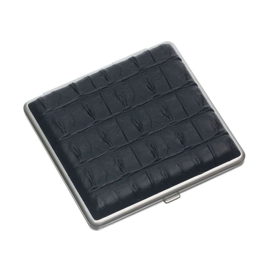 Портсигар S. Quire, сталь+искусственная кожа, черный цвет с рисунком, 96*93*19 мм