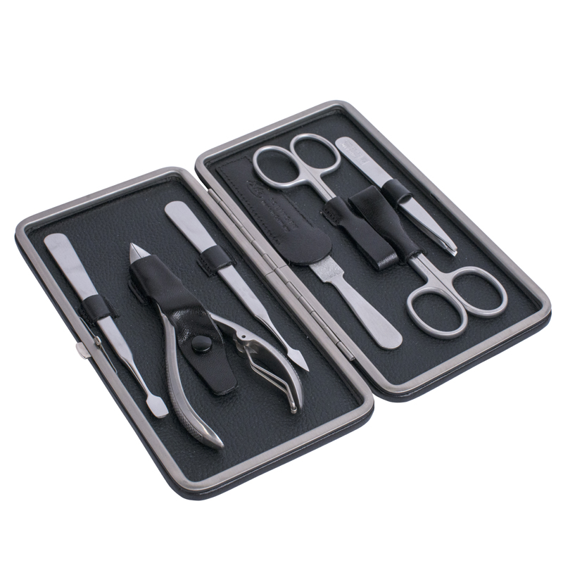 Маникюрный набор Erbe, 7пр. Футляр: натур. кожа, цвет черный