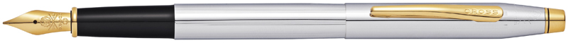 Ручка перьевая Cross Classic Century Medalist, латунь, покрытая полированным хромом, детали дизайна-позолота 23К, перо M-нержавеющая сталь с позолотой 23К