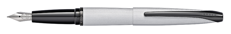Ручка перьевая Cross ATX Brushed Chrome, латунь, покрытие-хром, гравировка, детали дизайна-полированное покрытие черного цвета, перо М-нержавеющая сталь