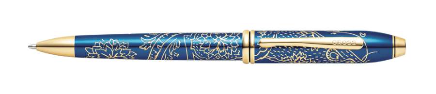 Ручка шариковая Cross Townsend Year of The Rat, корпус-латунь, покрытая ярким глянцевым лаком синего цвета с гравировкой и позолотой