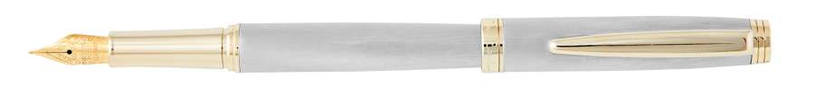 Ручка перьевая Pierre Cardin SHINE. Корпус - латунь с сатиновым хромированным покрытием. Отделка и детали дизайна - латунь и позолота. Съемный колпачок. Перо - нержавеющая сталь и позолота. Размер пера - тонкий (F), 0, 5 - 0, 6 мм. Цвет - серебристый. Упаковка B-1