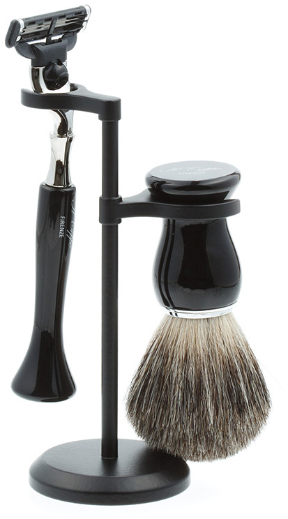 Бритвенный набор IL Ceppo: станок, помазок, подставка, черный цвет