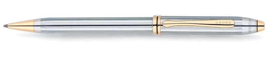 Ручка шариковая Cross Townsend, тонкий корпус. Корпус-латунь и хромовое покрытие. Отделка и детали дизайна-позолота 23К. Цвет-серебристый.