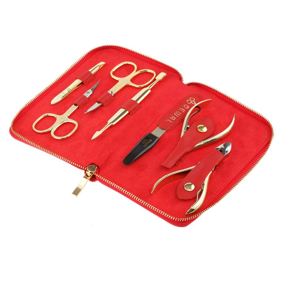 Маникюрный набор DEWAL, 7пр. Футляр: натуральная кожа, цвет красный