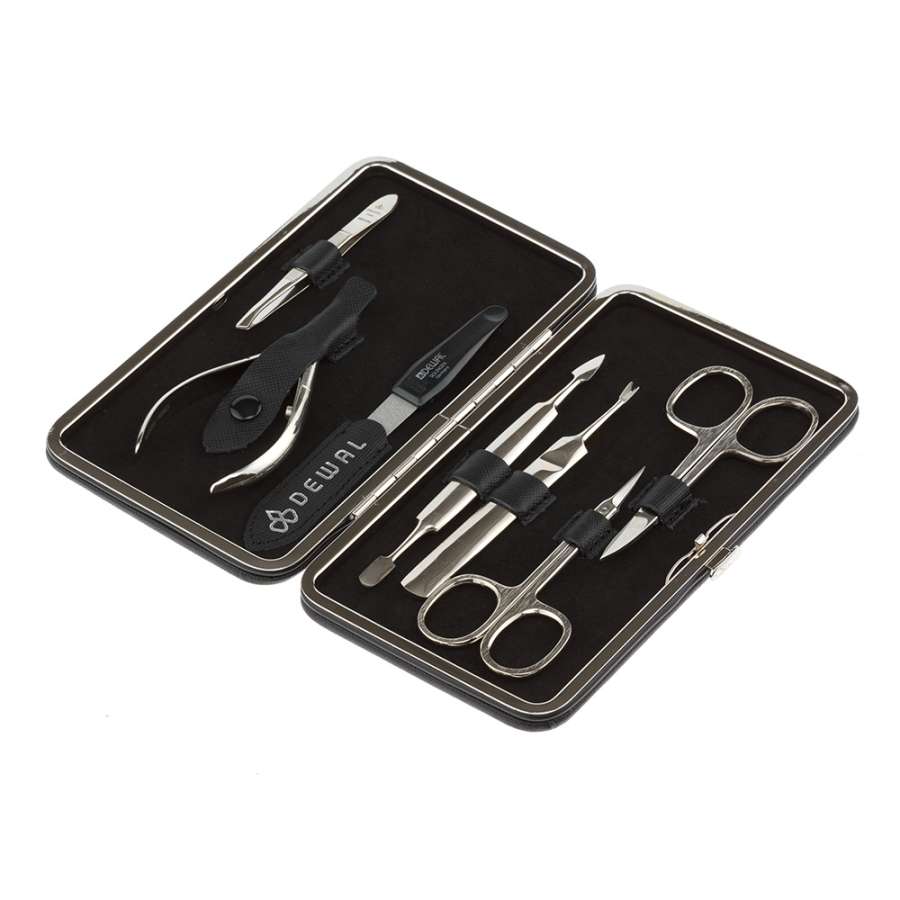 Маникюрный набор DEWAL, 7пр. Футляр: натуральная кожа, цвет черный