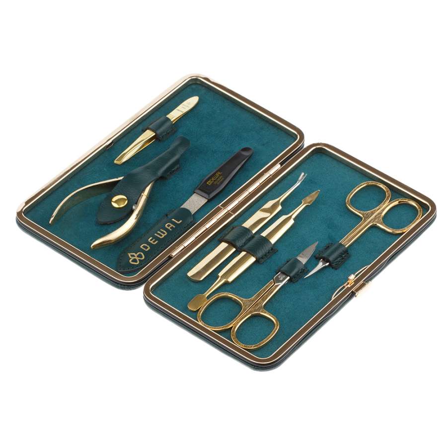 Маникюрный набор DEWAL, 7пр. Футляр: натуральная кожа, цвет зеленый