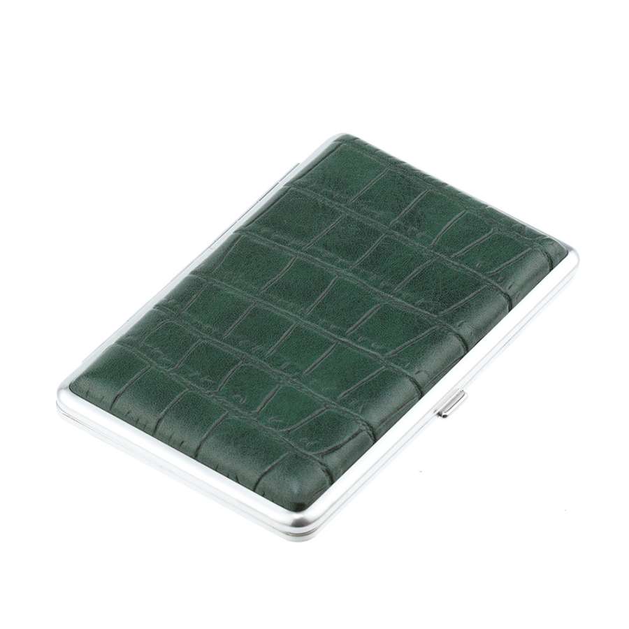 Портсигар S. Quire, нержавеющая сталь, искуственная кожа, тёмно-зелёный, 7, 4х11, 5х1, 8 см