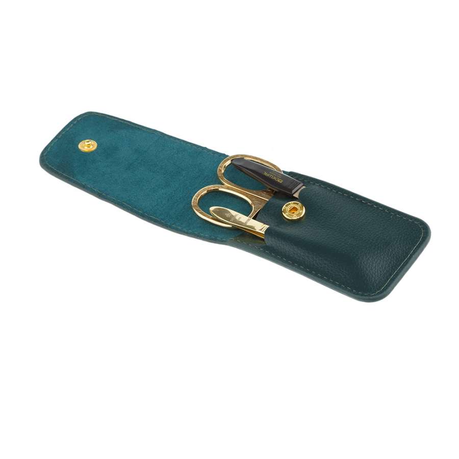 Маникюрный набор DEWAL, 3пр. Футляр: натуральная кожа, цвет зеленый