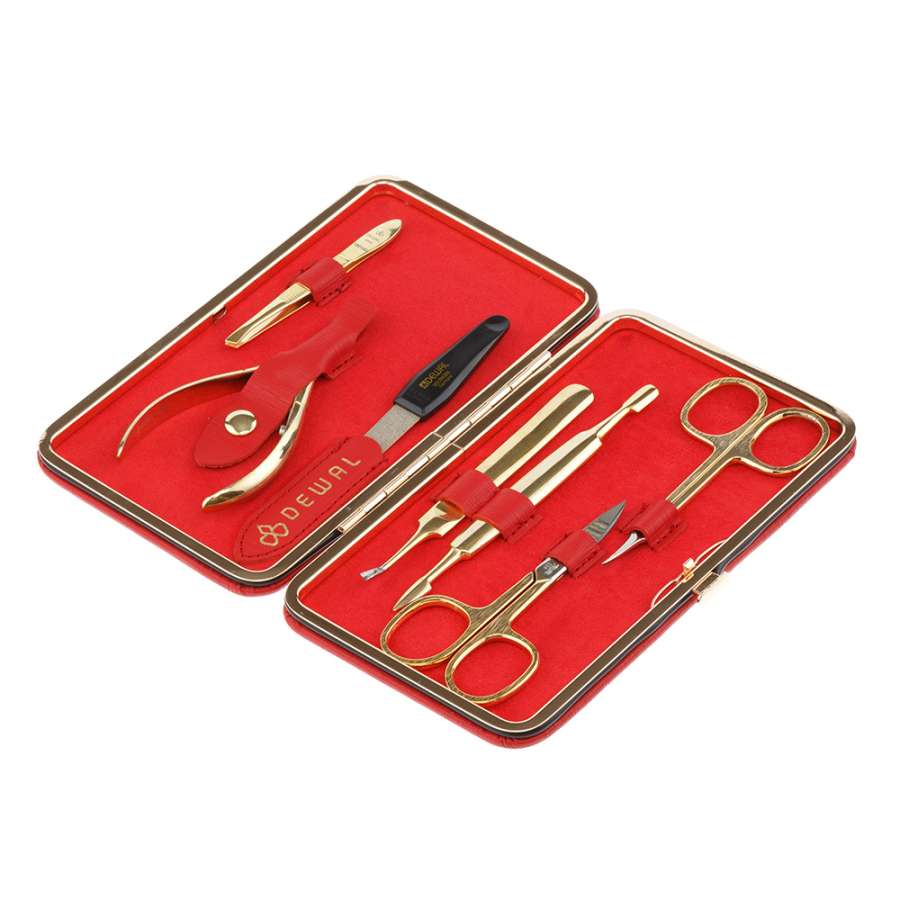 Маникюрный набор DEWAL, 7пр. Футляр: натуральная кожа, цвет красный