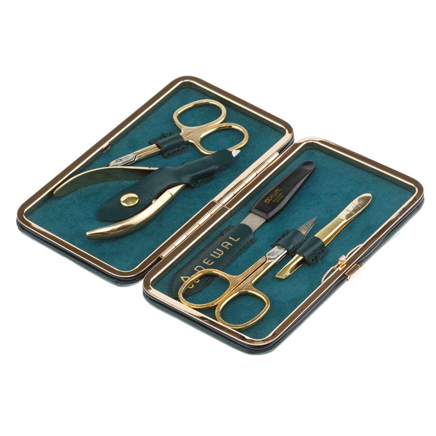 Маникюрный набор DEWAL, 5пр. Футляр: натуральная кожа, цвет зеленый