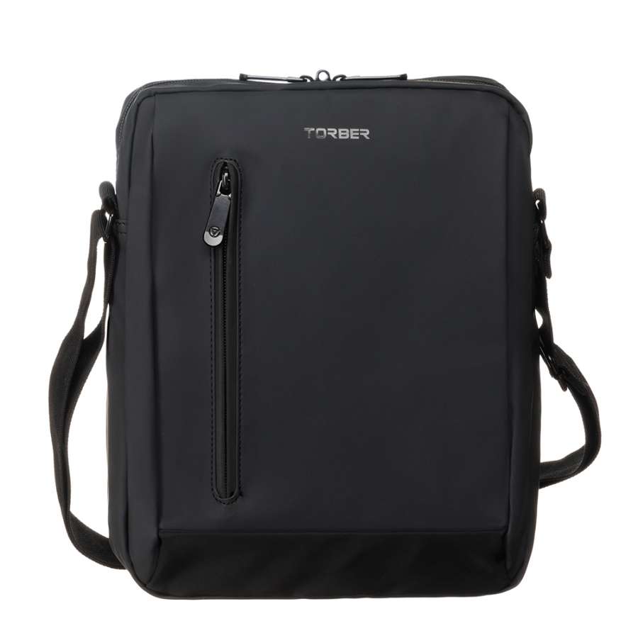 Сумка кросс-боди TORBER, черный/серый, полиуретан, 28х21х6 см