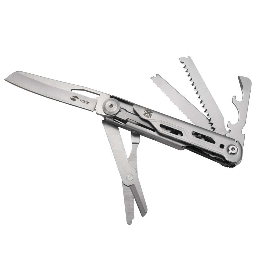 Нож перочинный Stinger, 112 мм, 9 функций, материал рукояти: нержавеющая сталь (серебристый)