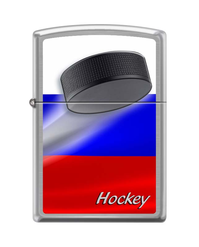Зажигалка ZIPPO Российский хоккей, с покрытием Brushed Chrome, латунь/сталь, серебристая, матовая, 38x13x57 мм