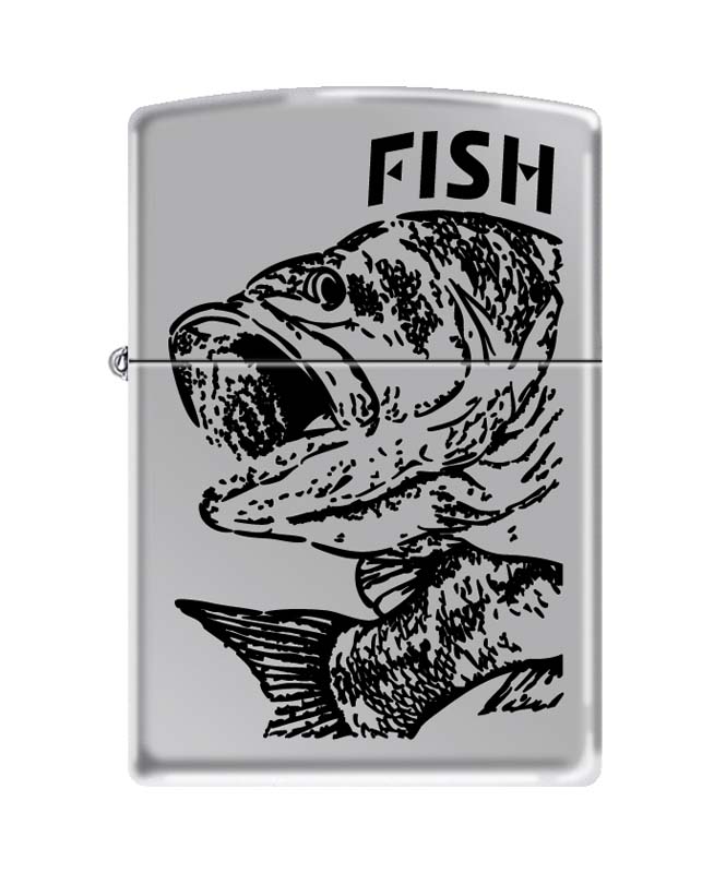 Зажигалка ZIPPO Чёрный окунь, латунь/сталь с покрытием High Polish Chrome, серебристая, глянцевая, 38x13x57 мм