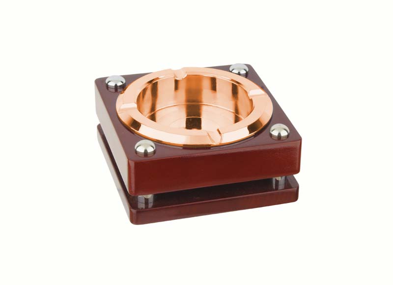 Пепельница S. Quire квадратная, цинковый сплав, дерево, покрытие никель, золотая, 10, 3х4, 9 см