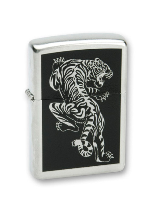 Зажигалка ZIPPO Tigre с покрытием Brushed Chrome, латунь/сталь, серебристая, матовая, 38x13x57 мм