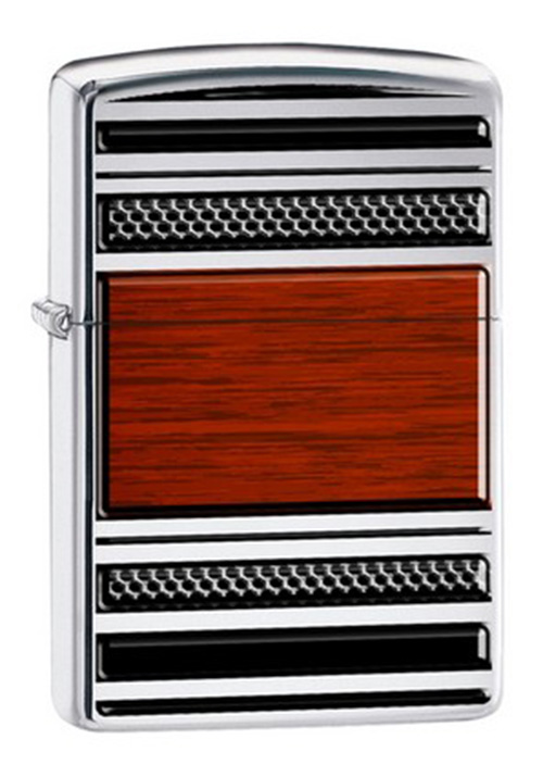 Зажигалка для трубок ZIPPO Pipe с покрытием High Polish Chrome, латунь/сталь, серебро/дерево, глянцевая, 36x12x56 мм