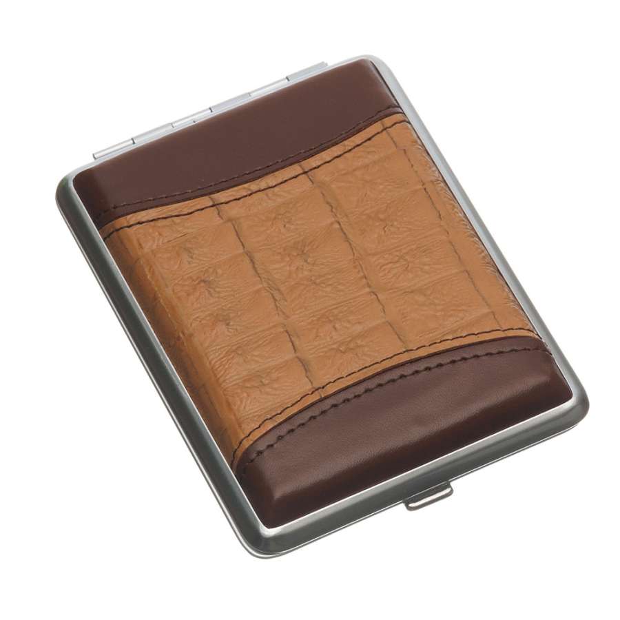 Портсигар S. Quire, сталь+натуральная кожа, коричневый цвет с рисунком, 74*95*18 мм