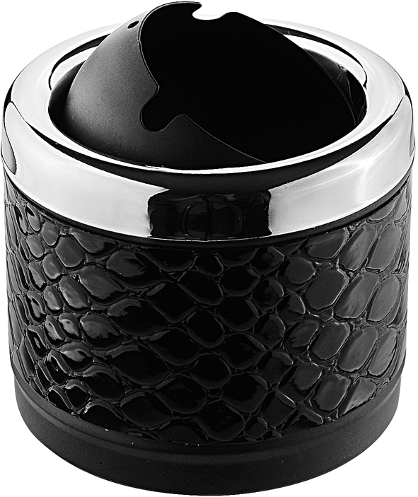Пепельница S. Quire круглая, сталь, покрытие никель и черная краска+искусственная кожа, серебристо-черный, 90 мм