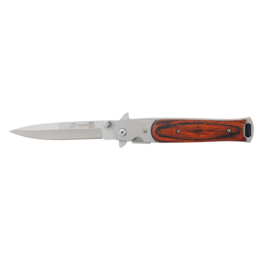 Нож складной Stinger, 100 мм, (серебристый), материал рукояти: сталь/дерево (серебристо-коричневый)