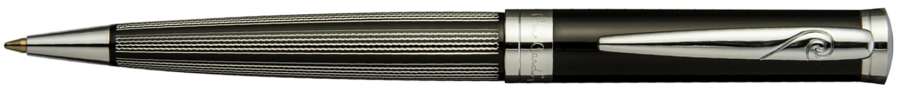 Ручка шариковая Pierre Cardin TRESOR. Корпус - латунь с гравировкой и лак, покрытие металл, колпачок - латунь и лак. Отделка и детали дизайна - латунь и хром. Цвет - черный и серебристый. Упаковка В