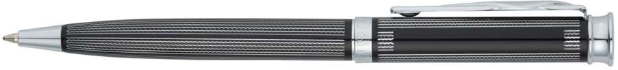 Ручка шариковая Pierre Cardin TRESOR. Корпус и колпачок - латунь с гравировкой, лак и покрытие металлом. Отделка и детали дизайна - латунь и хром. С полем под нанесение логотипа 3, 8 х 0, 8 см. Цвет - черный и серебристый. Упаковка В
