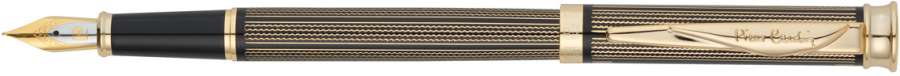 Ручка перьевая Pierre Cardin TRESOR. Корпус и колпачок - латунь с гравировкой, лак и покрытие металлом. Отделка и детали дизайна - латунь и позолота. С полем под нанесение логотипа 3, 8 х 0, 8 см. Съемный колпачок. Перо - сталь с позолотой. Размер пера - средний (М), 0, 7-0, 8 мм. Цвет - черный и золотистый. Упаковка В