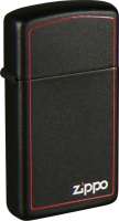 Зажигалка ZIPPO Slim® с покрытием Black Matte, латунь/сталь, чёрная с фирменным логотипом, матовая, 29x10x60 мм