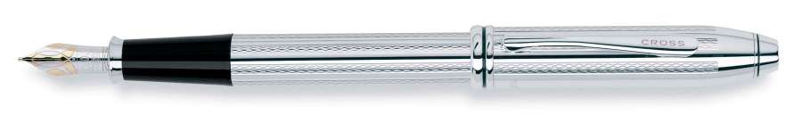 Ручка перьевая Cross Townsend. Корпус-латунь и платиновое покрытие с алмазной гравировкой. Отделка и детали дизайна-родиевое покрытие. Перо-золото 18К/родий, тонкое. Цвет-платиновый.