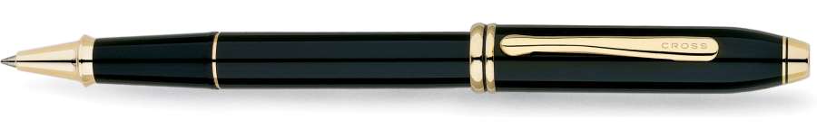Ручка-роллер Selectip Cross Townsend. Корпус-латунь и многослойное лаковое покрытие. Отделка и детали дизайна-позолота 18К. Цвет-черный.