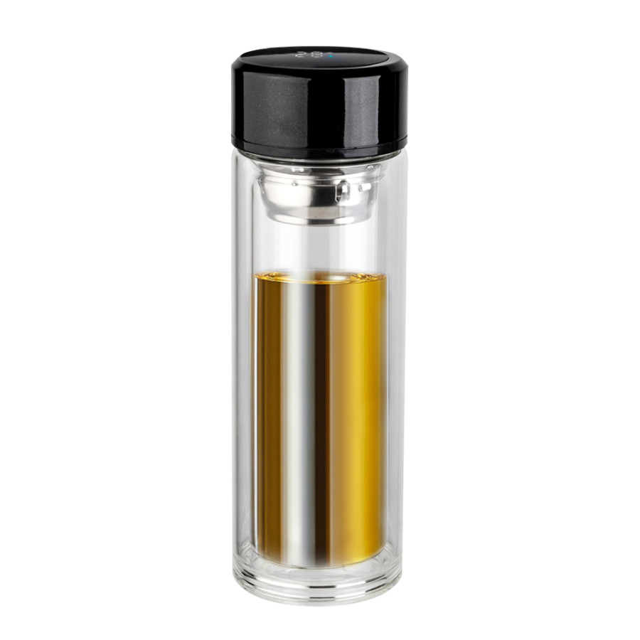 Светодиодный дисплей укажет температурный режим содержимого напитка. Емкость батареи дисплея рассчитана на 78000 касаний. Объем бутылки 350 мл. Термос стеклянный c дисплеем Marcus выполнен из сверхпрочного боросиликатного закаленного стекла. Основное преимущество материала в том, что не разобьется и не обожжет горячим напитком Ваши руки. Внутри бутылки находится инфьюзер, который упростит процесс заваривания чая. Просто засыпьте заварку в инфьюзер, залейте кипяток в нижнюю часть бутылки, соедините, напиток готов. Оптимальная температура для заваривания 80-85С.
