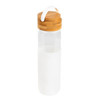 Бутылка стеклянная с силиконовой манжетой и бамбуковой крышкой Glass, белая