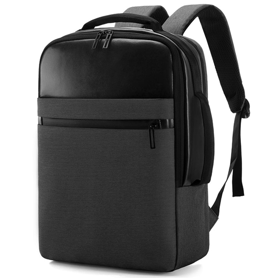 Верх рюкзака и часть передней стенки из высококачественной искусственной кожи надёжно защищают содержимое от попадания внутрь влаги. Два отделения закрываются на молнии со скрытым звеном.