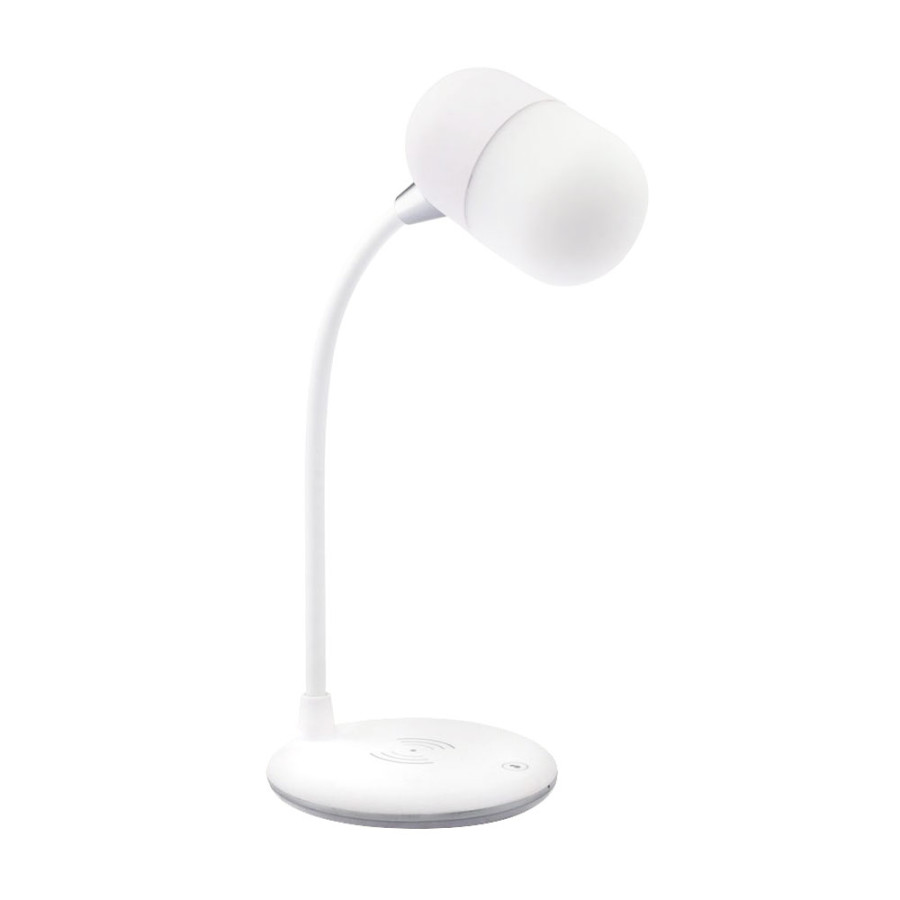 Лампа с колонкой и беспроводной зарядкой Alladin, белая