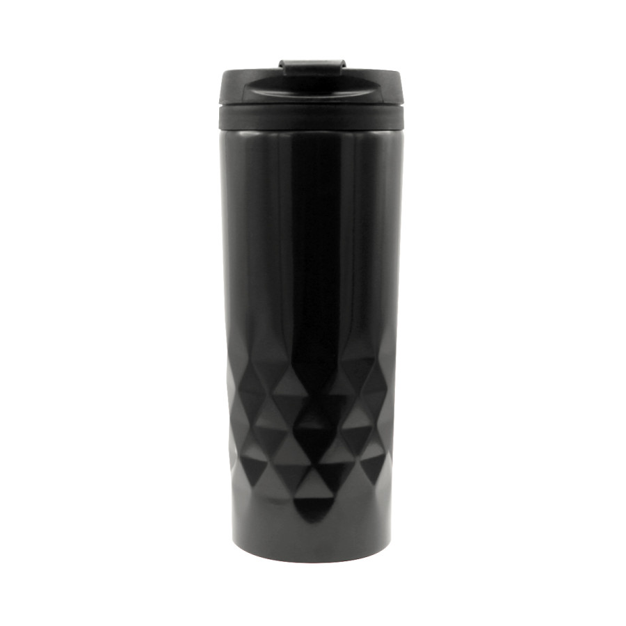Стильная термокружка изготовлена из нержавеющей стали и дополнена оригинальными геометрическими деталями. Внутренняя колба сделана из пластика. Удобная крышка не даст расплескаться напитку. Объем термокружки – 500 мл.