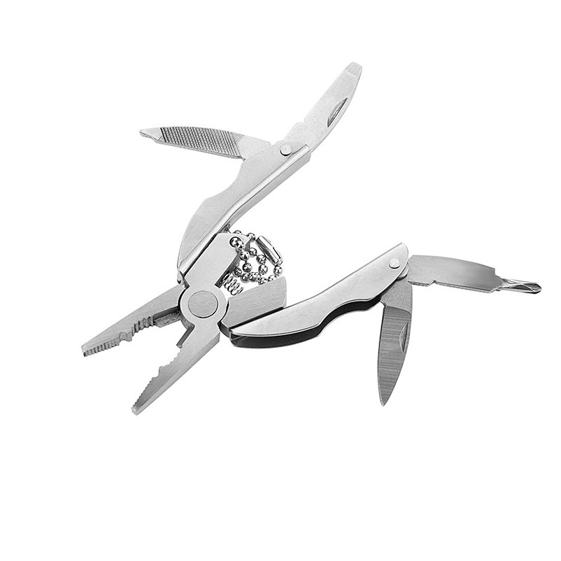 - Функции: плоскогубцы, пилка, нож, прямая отвёртка, крестовая отвёртка