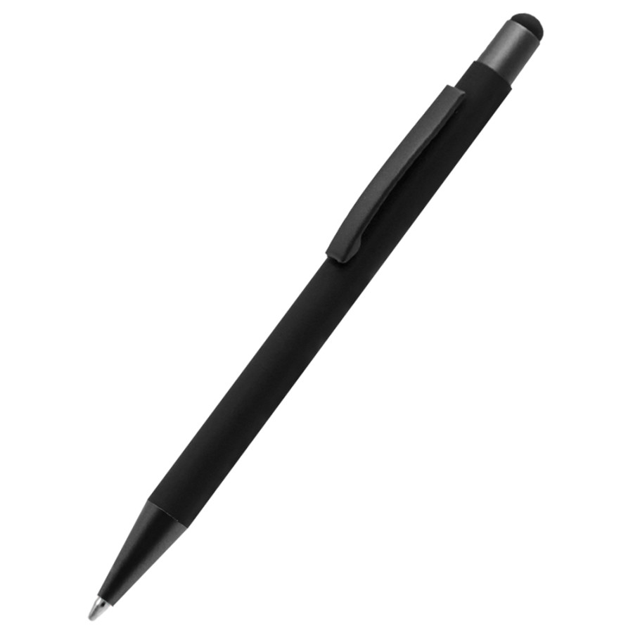 Бархатистая на ощупь ручка Story сотф-тач сделана из металла. Синие чернила, имеет стилус для взаимодействия с портативными устройствами. Толщина пишущего узла 1 мм, длина письма рассчитана на 700 м.
