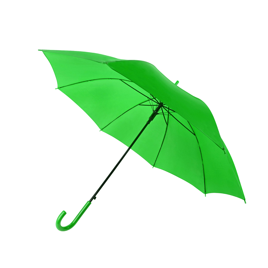 Базовая модель зонта, удобная и надежная. Автоматическое открытие, черная рама, ручка в цвет купола. Поставляется без чехла