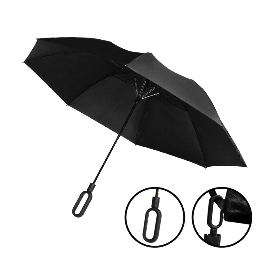 Зонт Глиссер с ручкой-карабином, которая позволяет легко прикрепить зонт на сумку или рюкзак и освободить руки. Тип полуавтомат - автоматическое открытие и ручное закрытие (два сложения). Ткань эпонж, которая отталкивает капли воды. Зонт упакован в чехол.