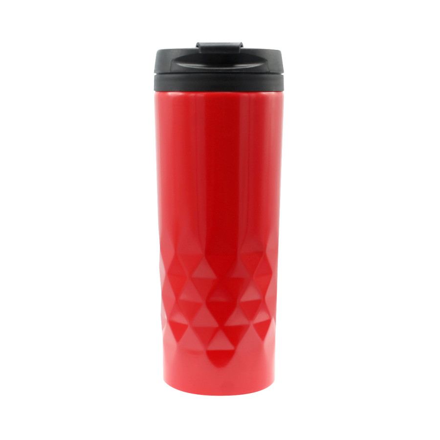 Стильная термокружка изготовлена из нержавеющей стали и дополнена оригинальными геометрическими деталями. Внутренняя колба сделана из пластика. Удобная крышка не даст расплескаться напитку. Объем термокружки – 500 мл.