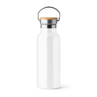 Термос с двойными вакуумными стенками и бамбуковой крышкой. Емкость 500 мл. Возможность сублимации на белом цвете. Складная металлическая ручка. Доступна в большом разнообразии цветов.