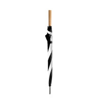 Зонт с деревянной ручкой и автоматическим открыванием. Ребра и наконечники черного цвета. Застежка на липучке.
