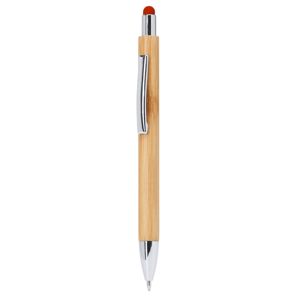 Шариковая ручка Eco line с бамбуковым корпусом, цветным указателем и металлическим клипсом. Серебристая кнопка, клип и наконечник. Прозрачная заправка jumbo диаметром 1, 0 мм с синими чернилами.