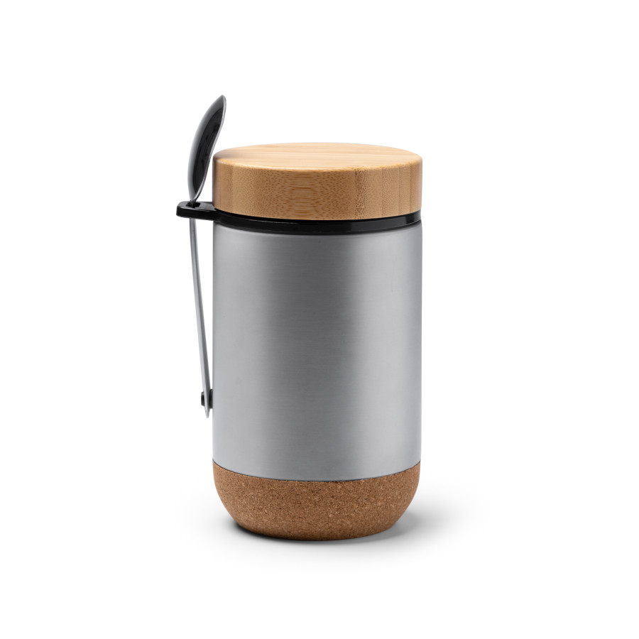 Термос из нержавеющей стали. Двойная стенка с медной изоляцией. Емкость 400 мл. Бамбуковая крышечка и пробковое донышко.